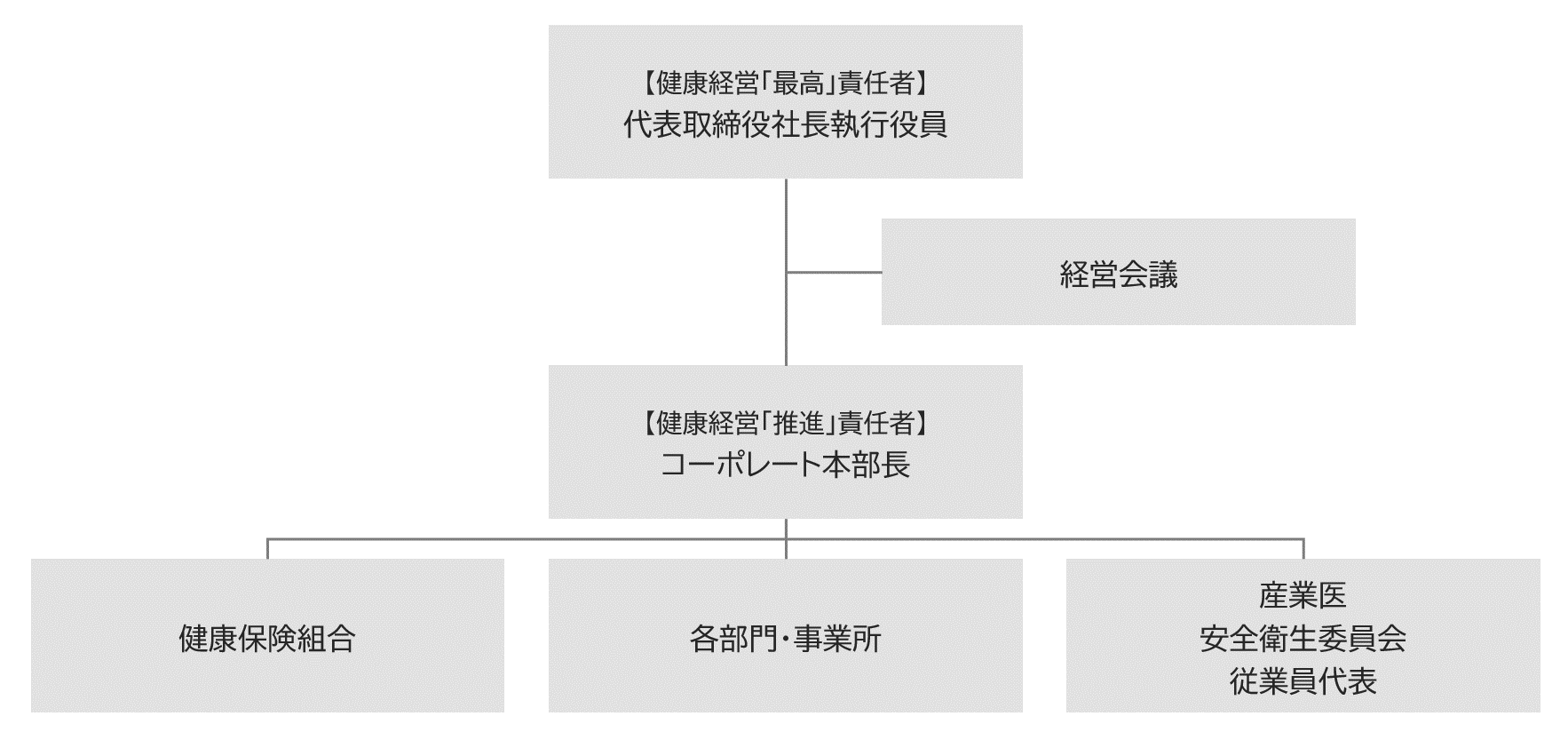 ここに健康経営を推進し、従業員が健康で長く働き続けていくことができる環境づくりに、積極的に取り組んでいくことを宣言します。
