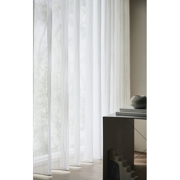 シャープな幾何モチーフの300巾ボイル。ストライプに近い柄なので、コーディネートしやすいのも特長です。