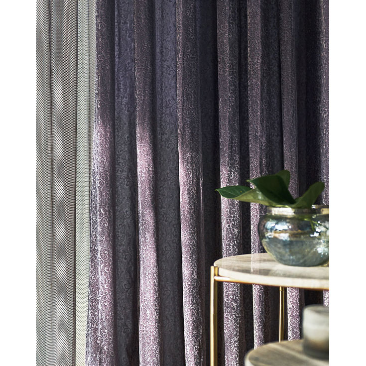 細い糸で緻密に、かつ厚みを抑えて編み上げた、ドレープ性の良いモダンな配色のカラーレースです。
