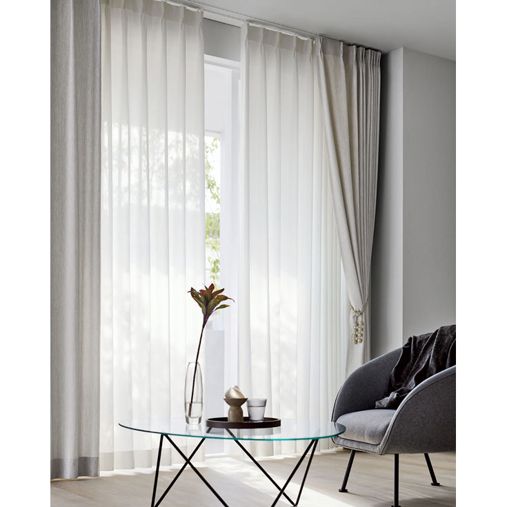 繊細なパターンを先染のジャカードで複雑に織った、シンプルながらも手の込んだ1枚。