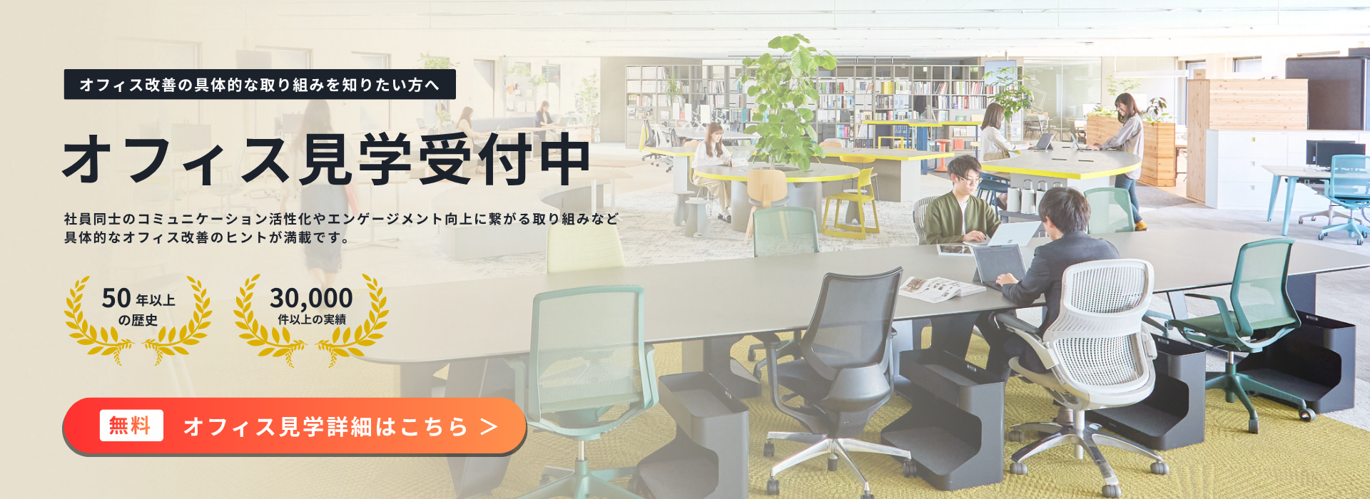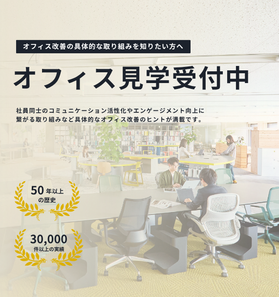 オフィス戦略立案からプロジェクト完了まで多角的に行うパートナーとして、健康経営、コミュニケーション活性化、生産性向上などお客さまのビジネス課題を解決します。