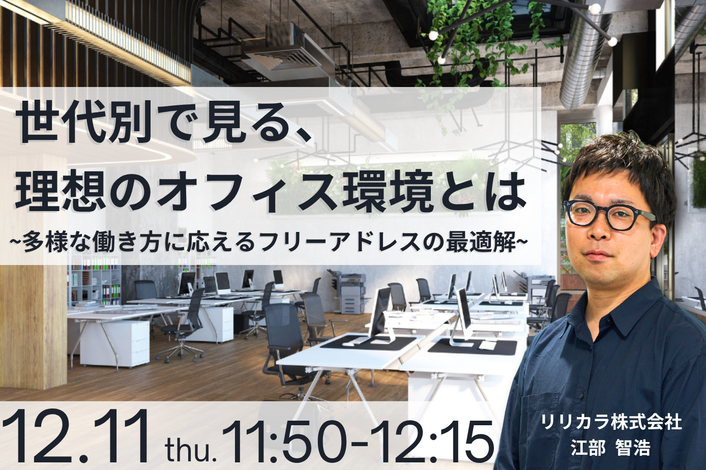 本セミナーでは、フリーアドレスでよくある課題を世代別の価値観や行動傾向から解決策をご紹介。全世代が快適に働けるフリーアドレス空間のつくり方のヒントをぜひお持ち帰りください。