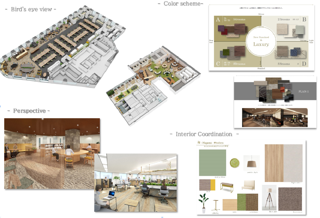 リリカラのワークサマリーではオフィス構築に関して一環した社内体制が魅力のひとつです。設計業務は勿論のこと、コンサルティングからアフターフォローまでを専任の担当者が伴走して参ります。また経験豊かなディレクターの元に、インテリアやFFEデザインのメンバーがチームを組むことで、デザイナーひとり一人の個性を引き出すことを大切にしています。